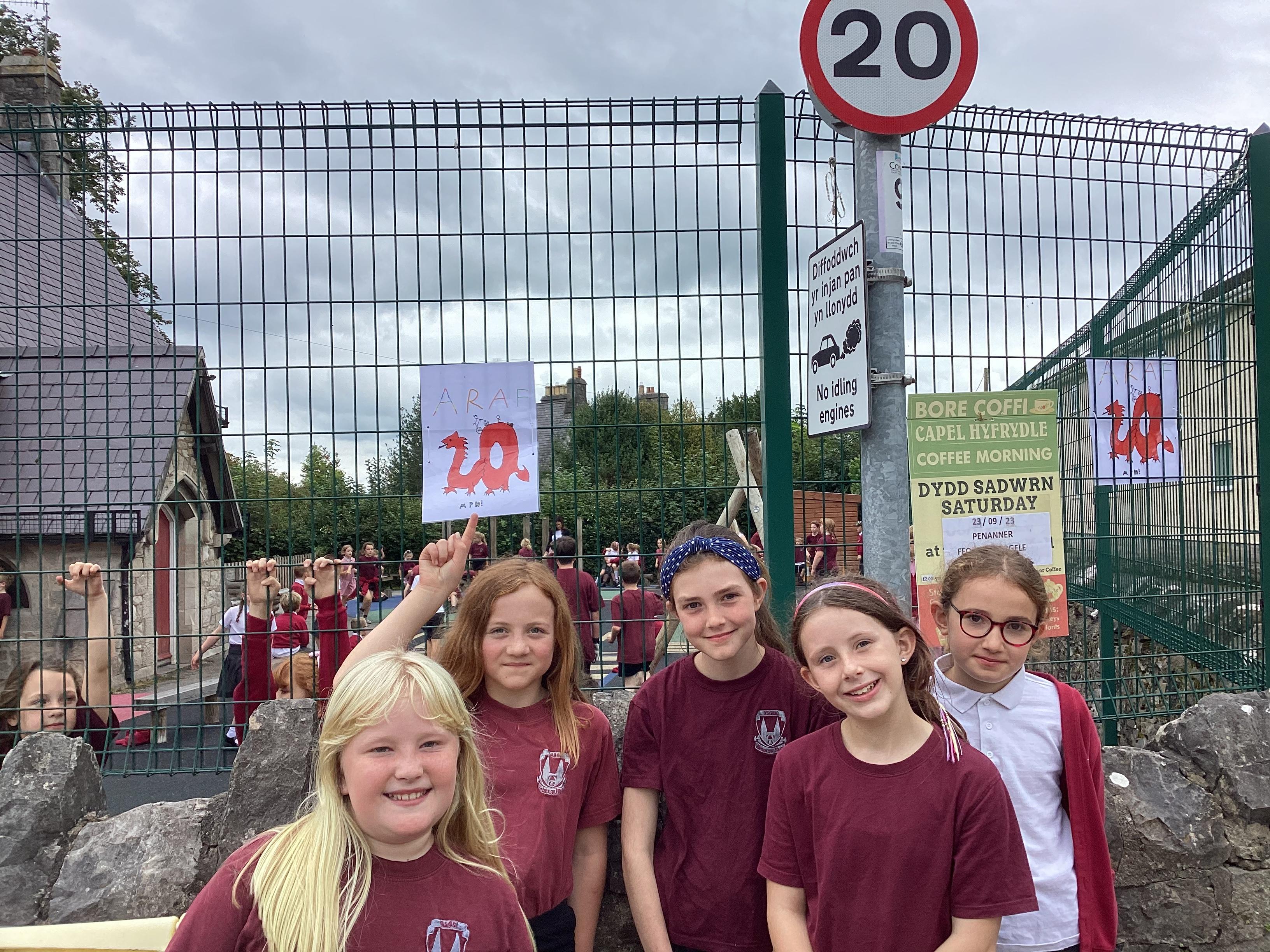 Ein harwydd i annog gyrwyr i ddilyn y terfyn cyflymder 20mya