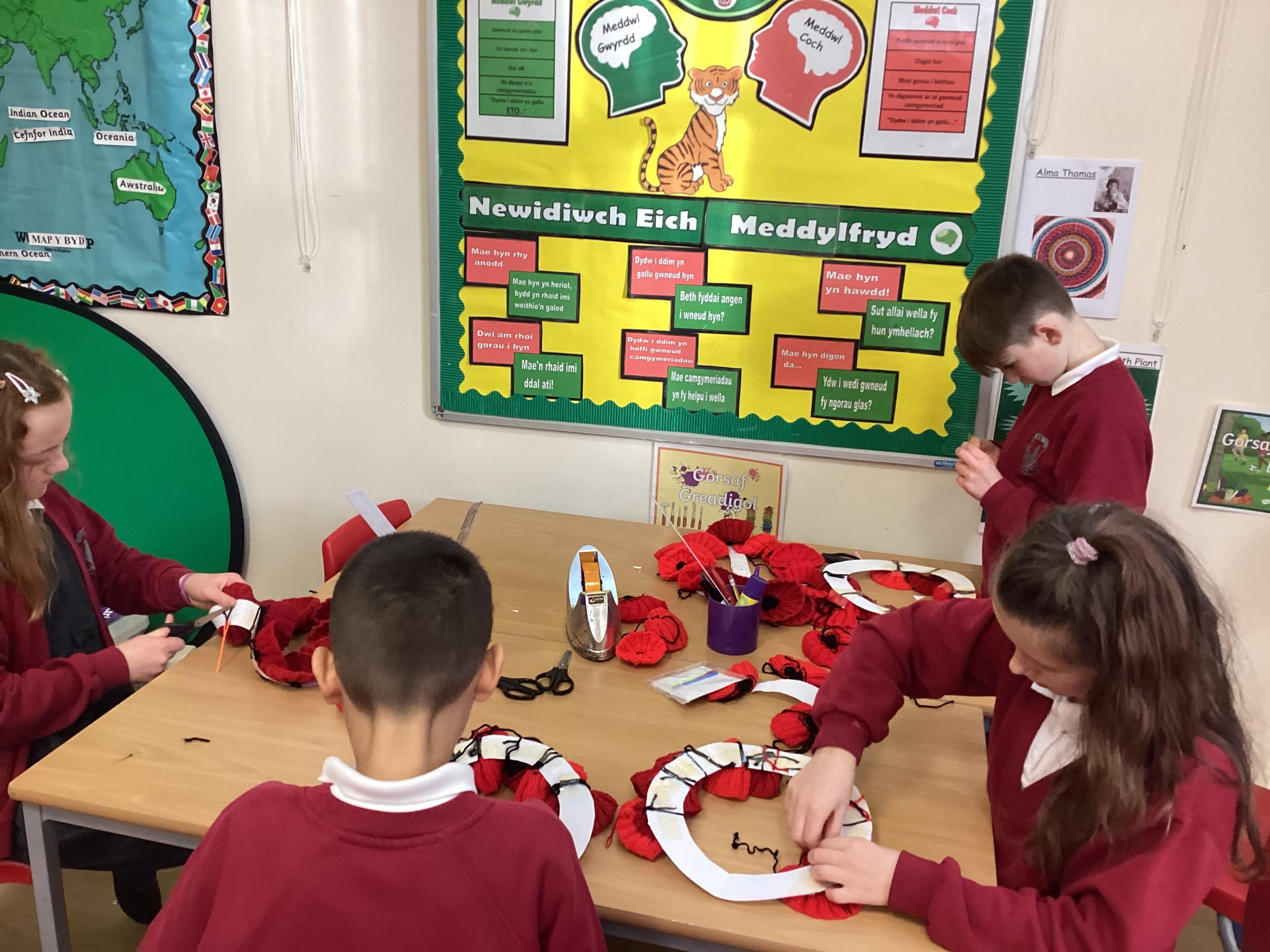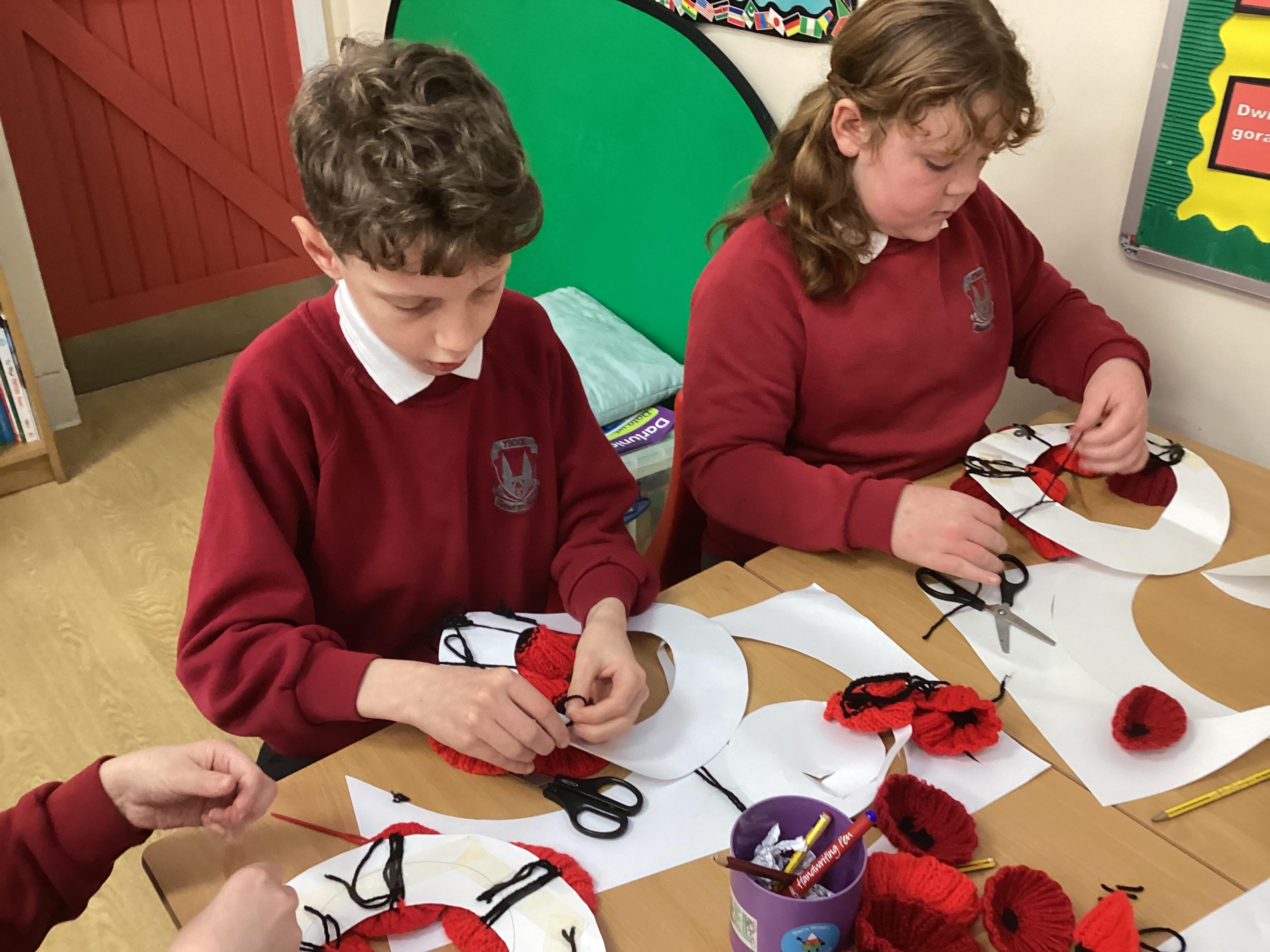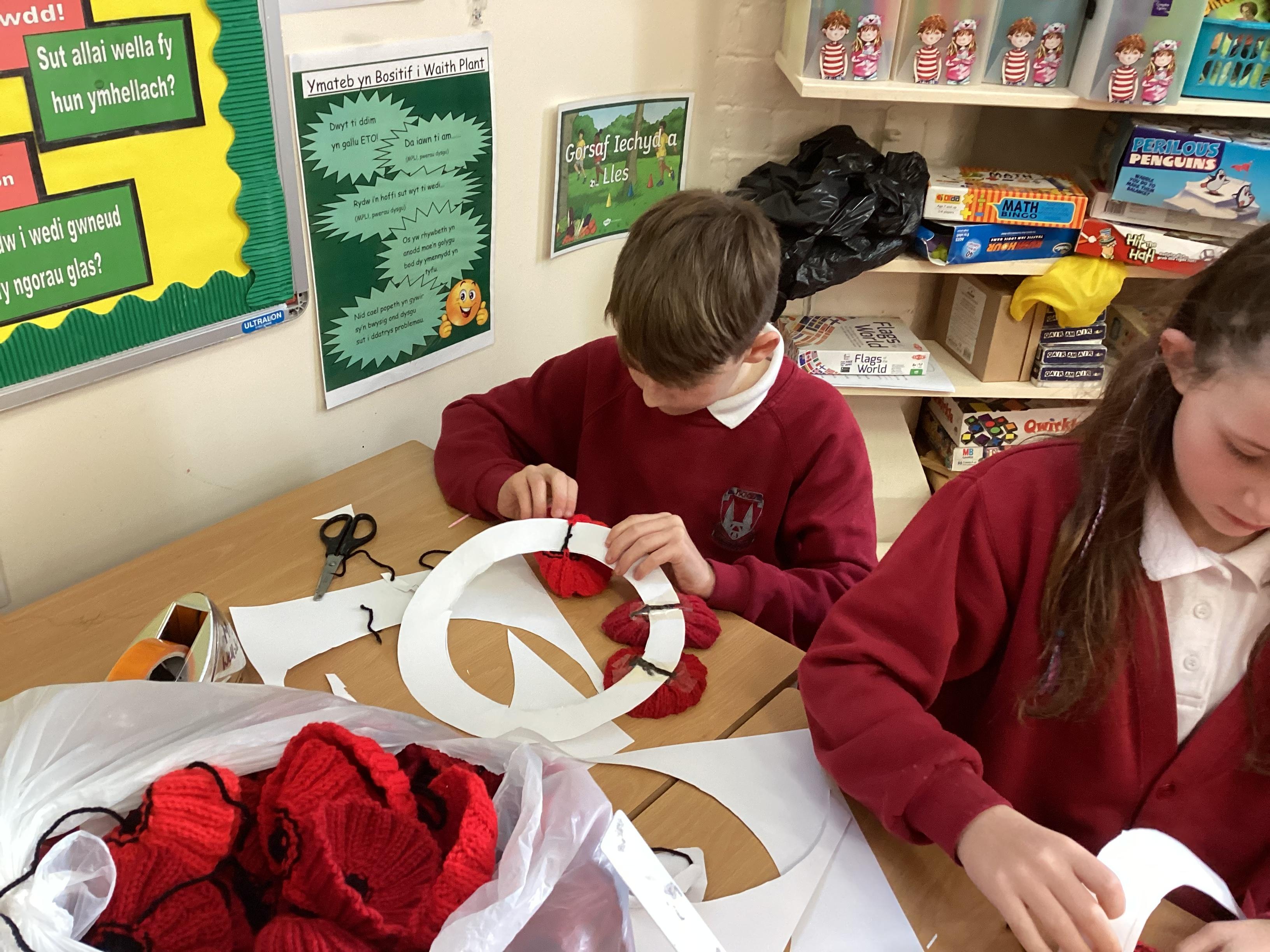 Creating a wreath for Remembrance Day.