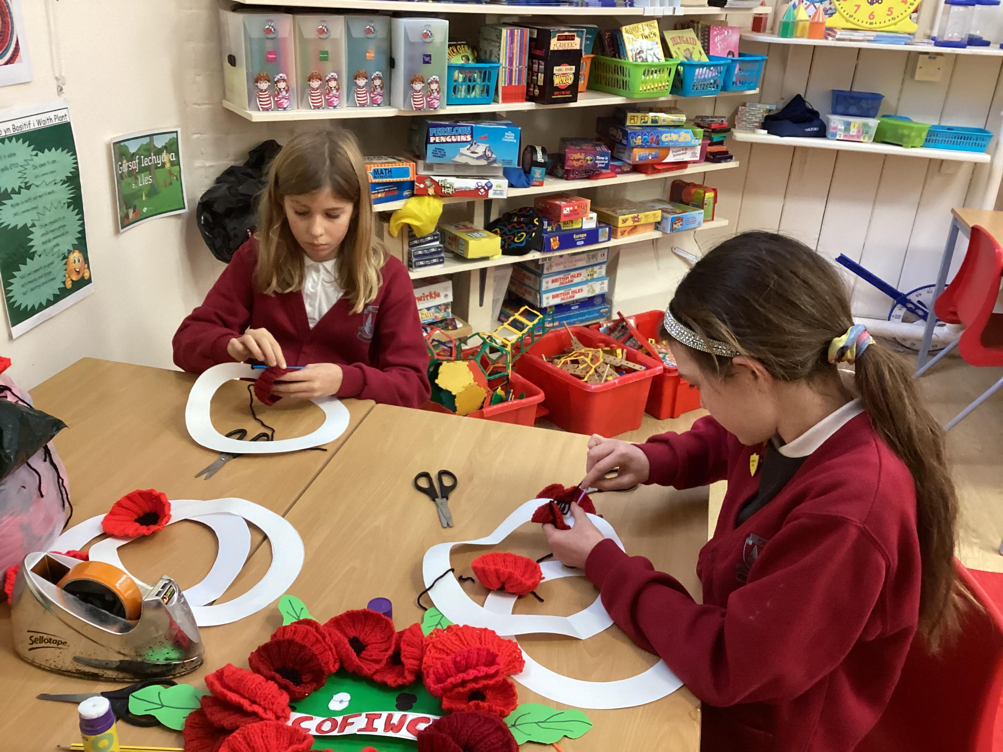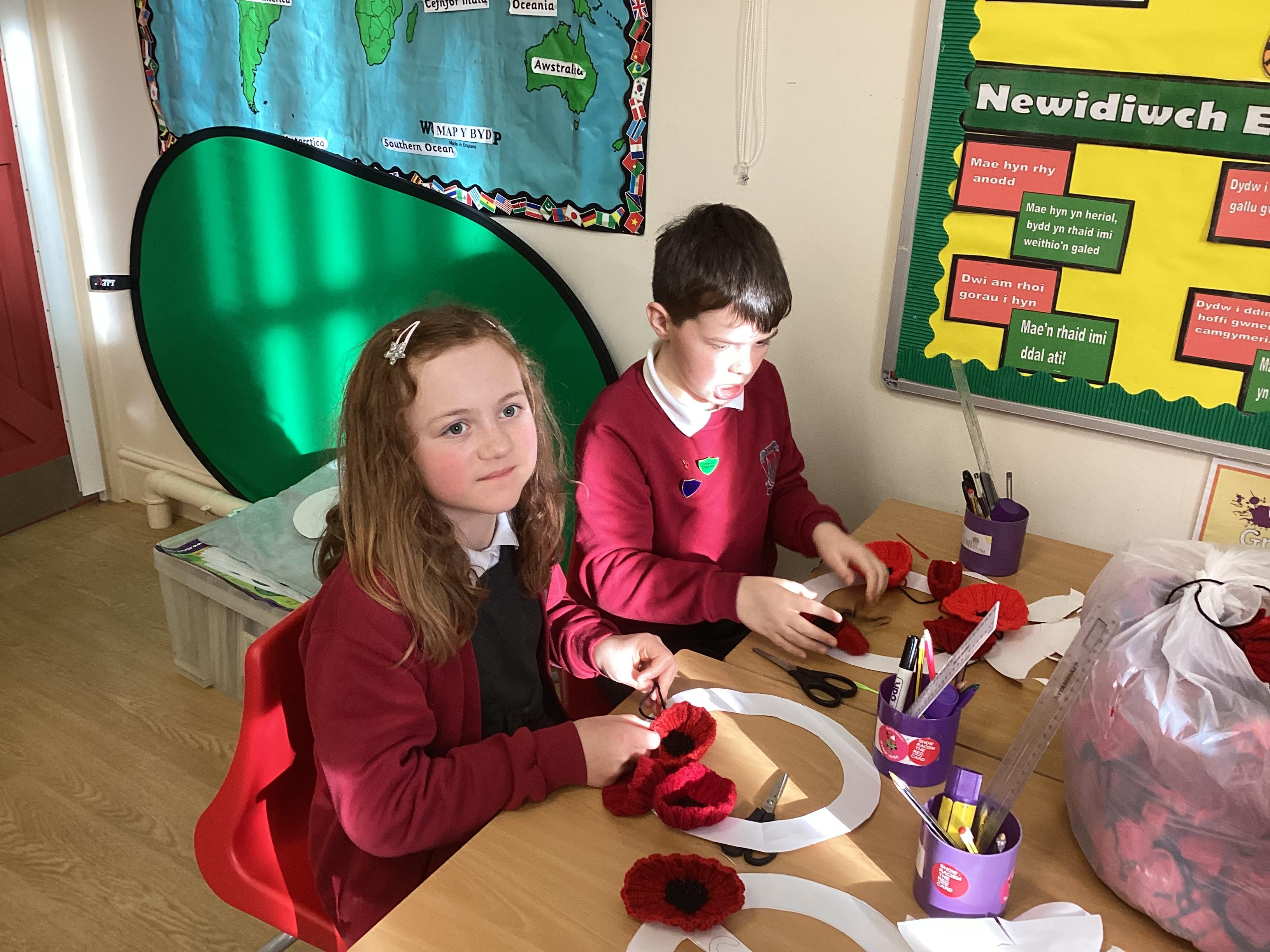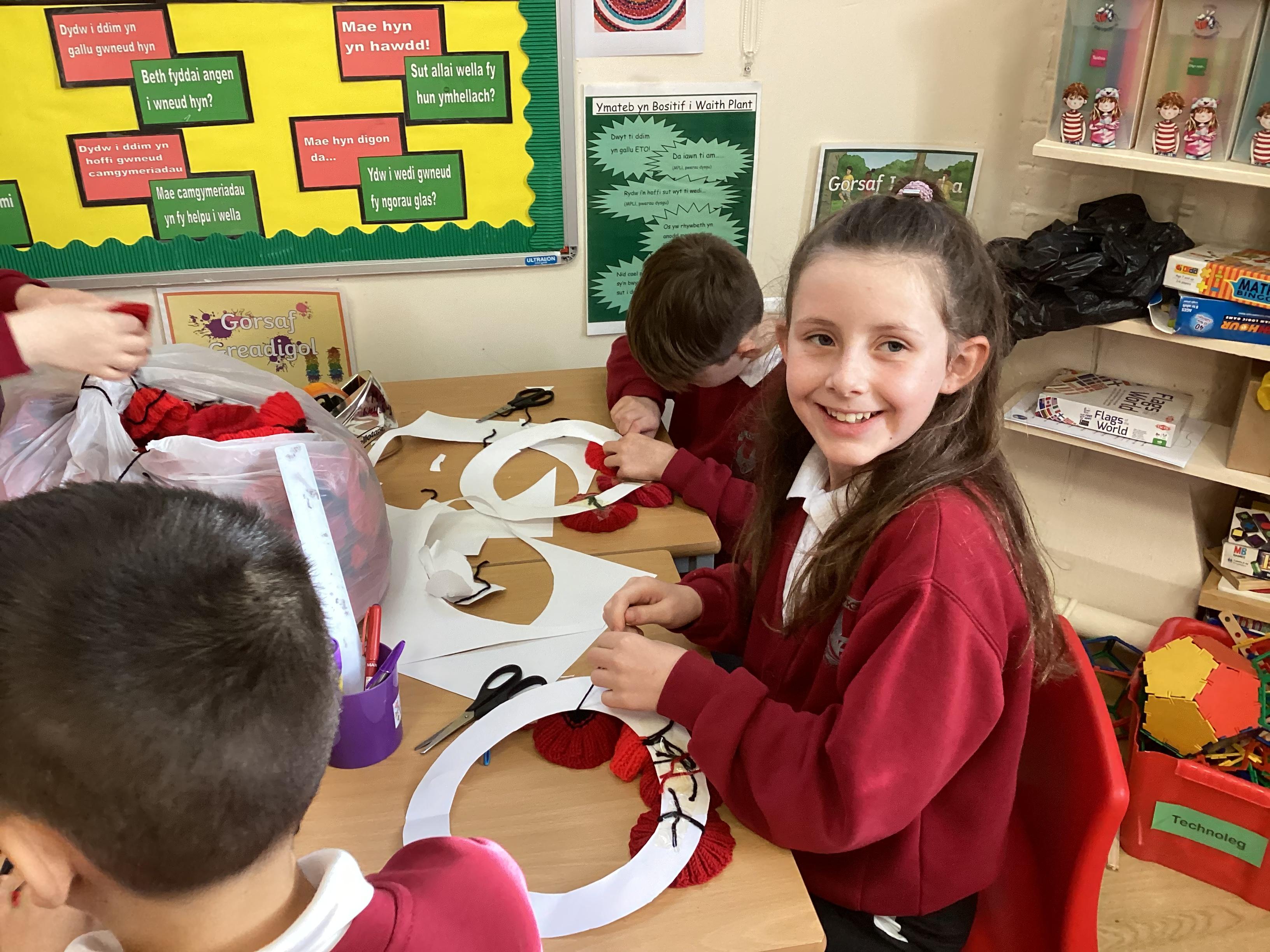 Creating a wreath for Remembrance Day.