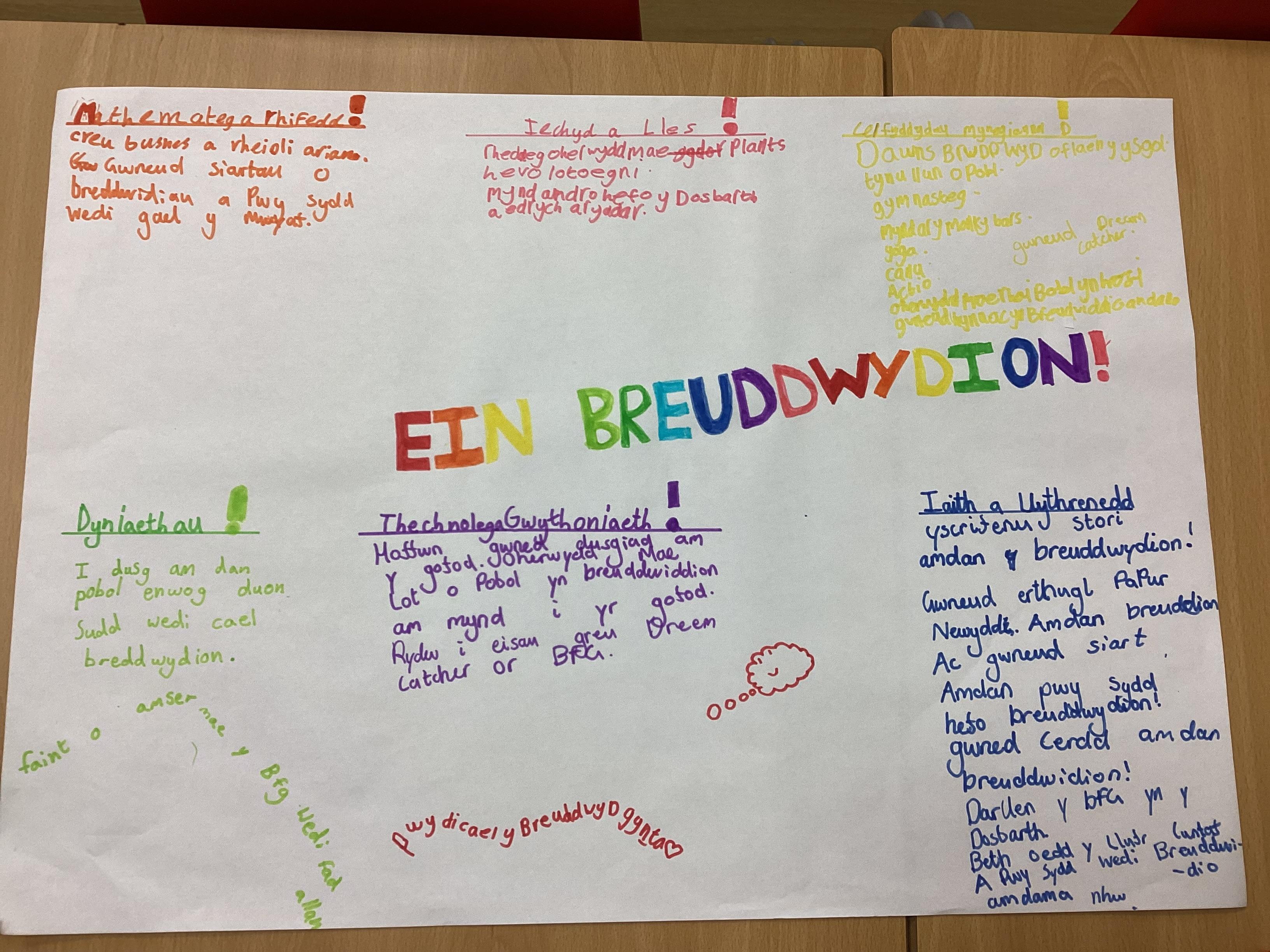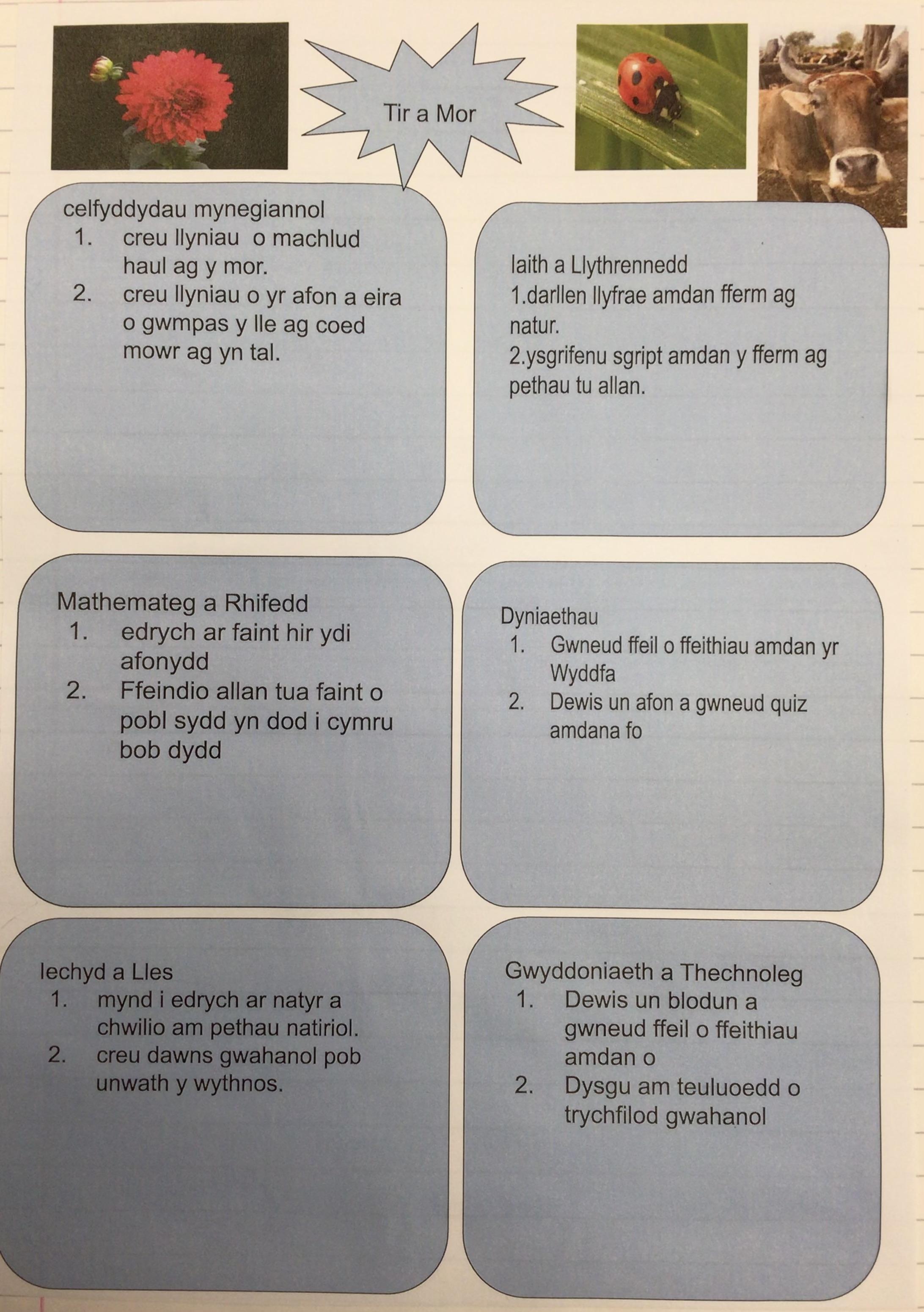 Rydym wedi bod yn cydweithio i feddwl am ein syniadau dysgu ar gyfer y tymor!