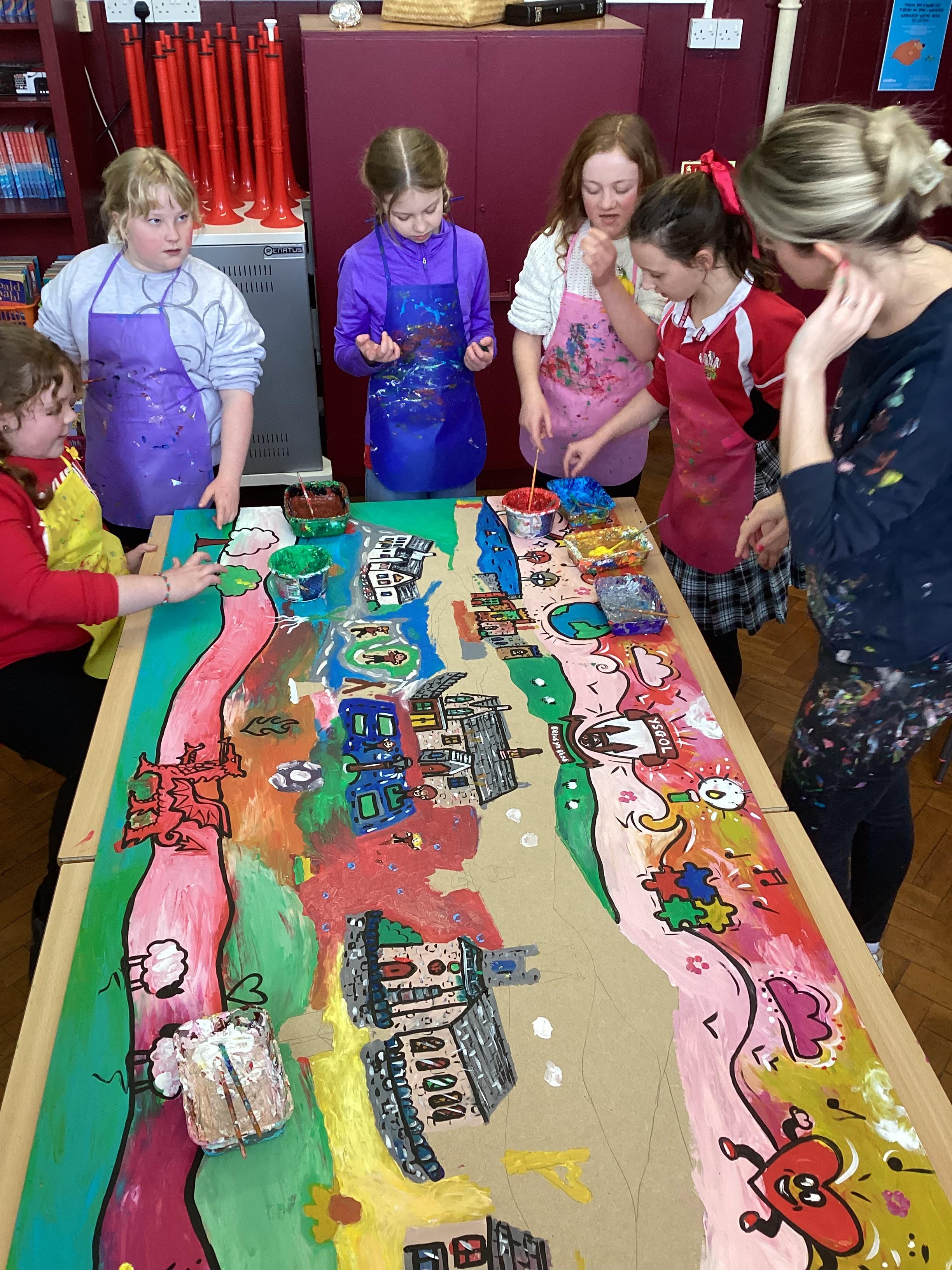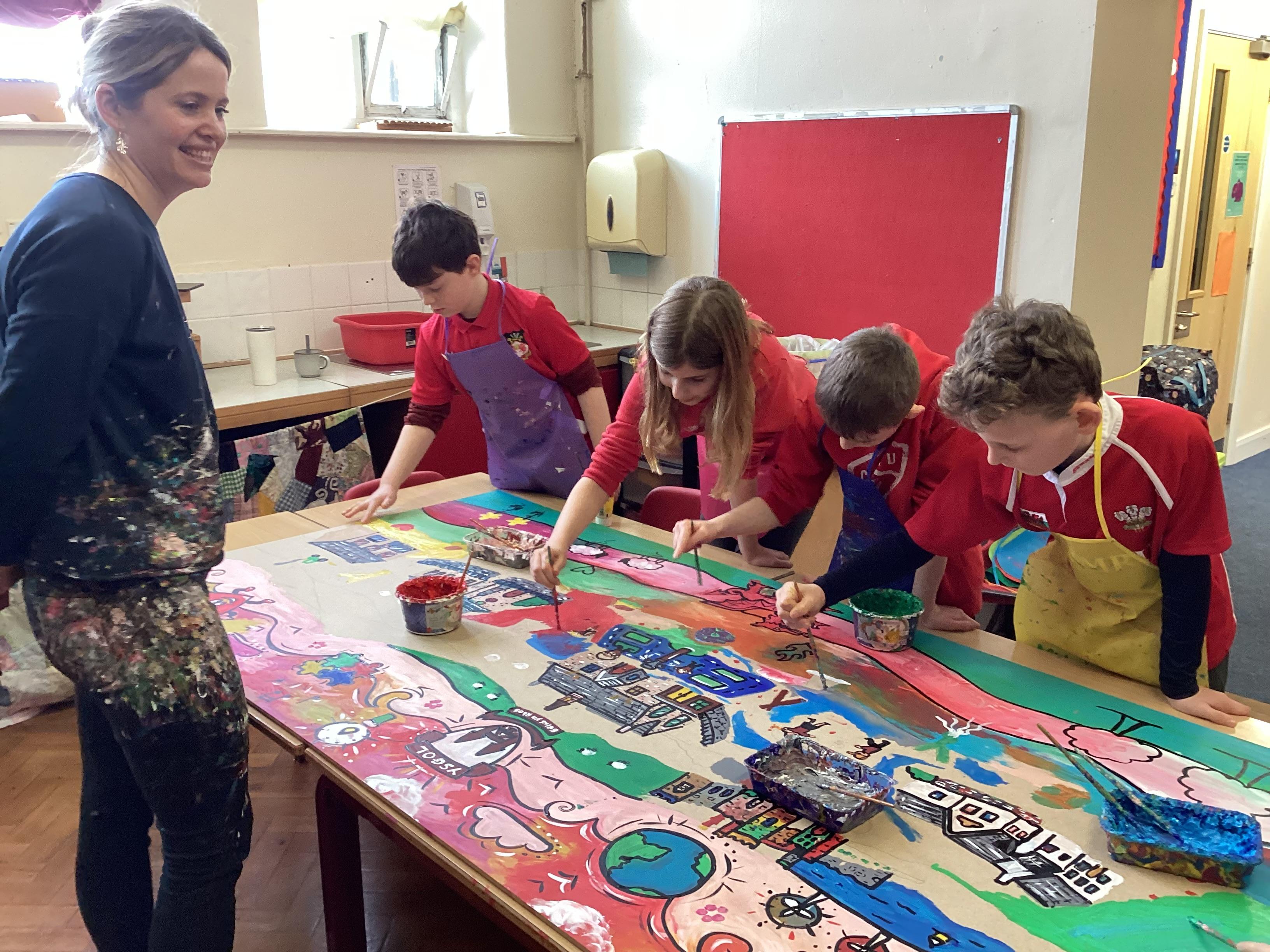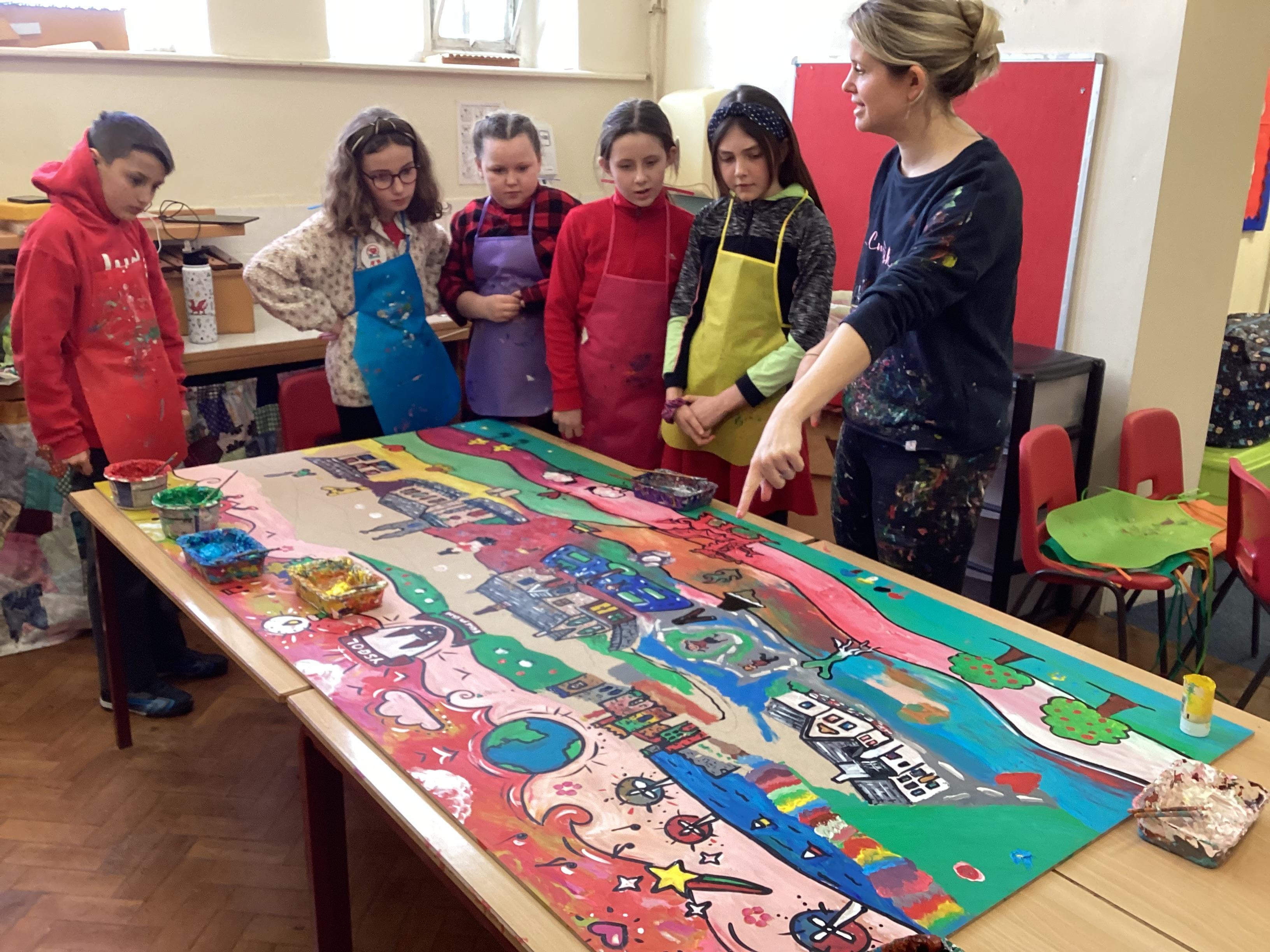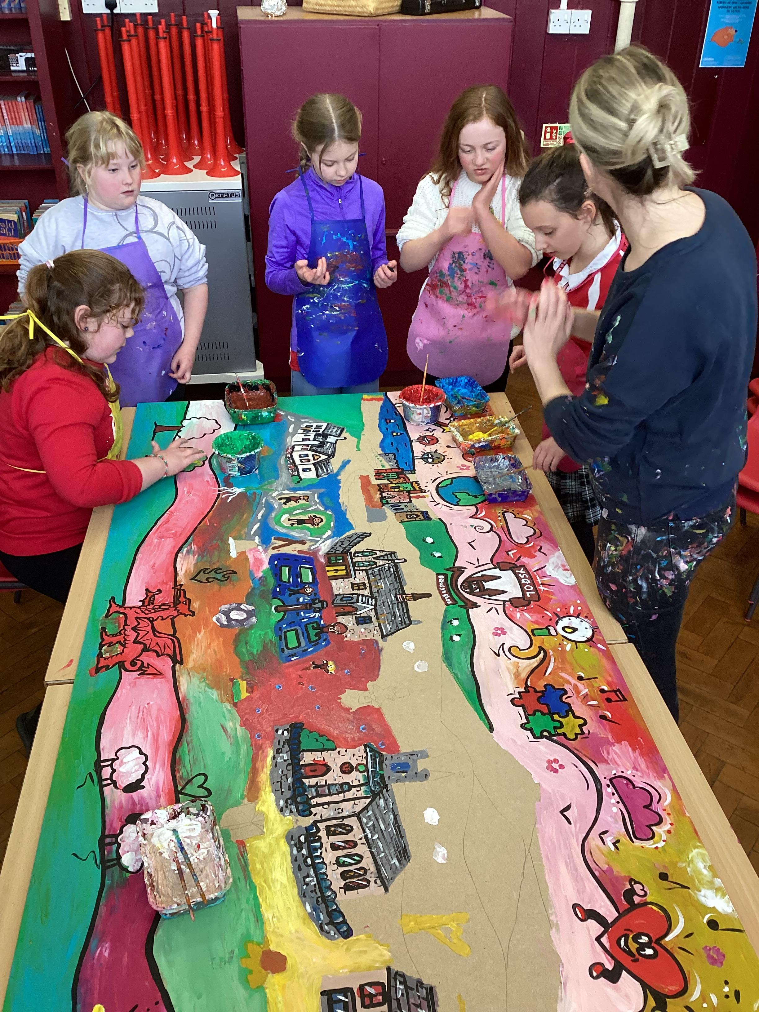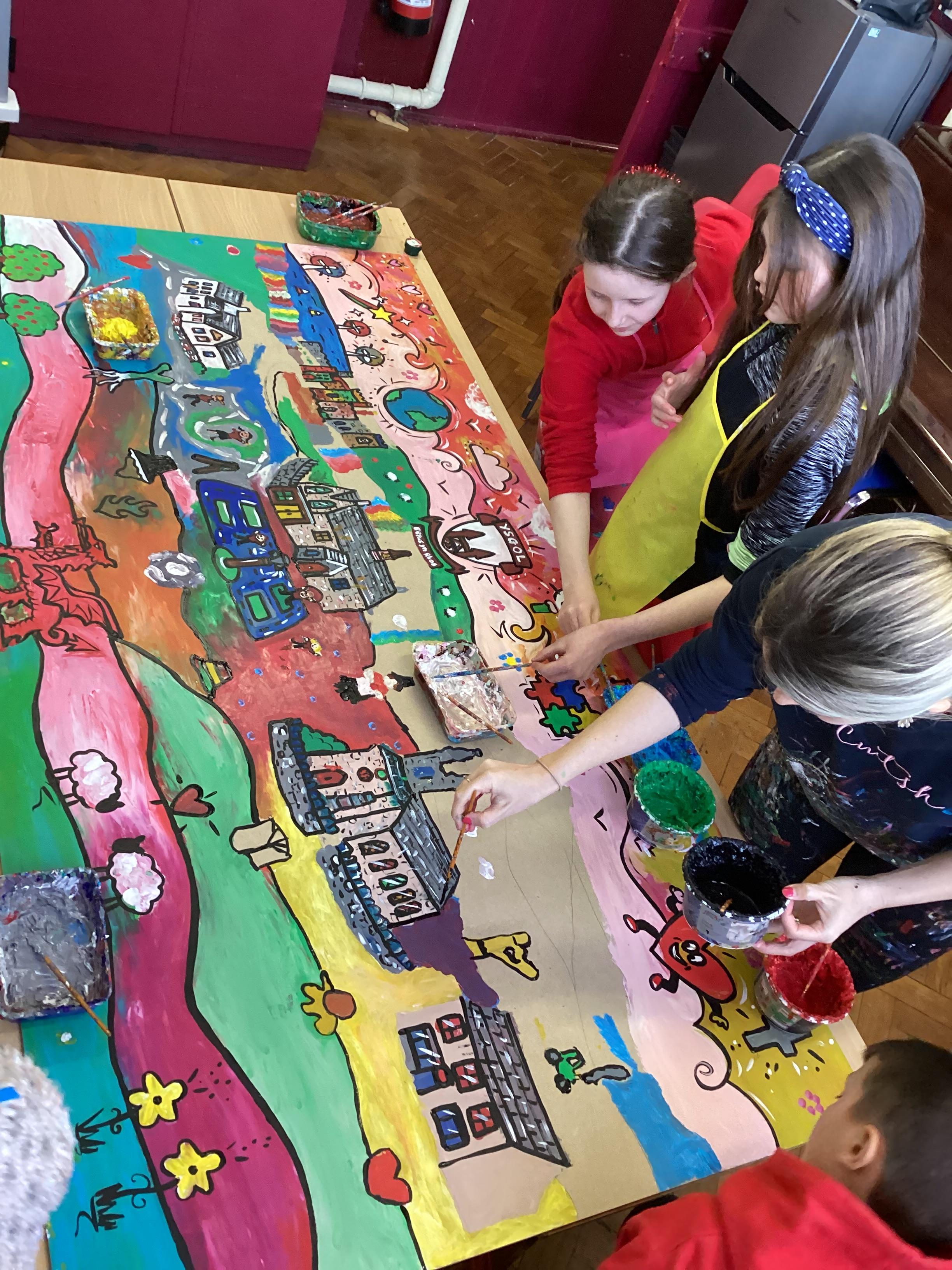 Creating a mural with Rhiannon Roberts!
