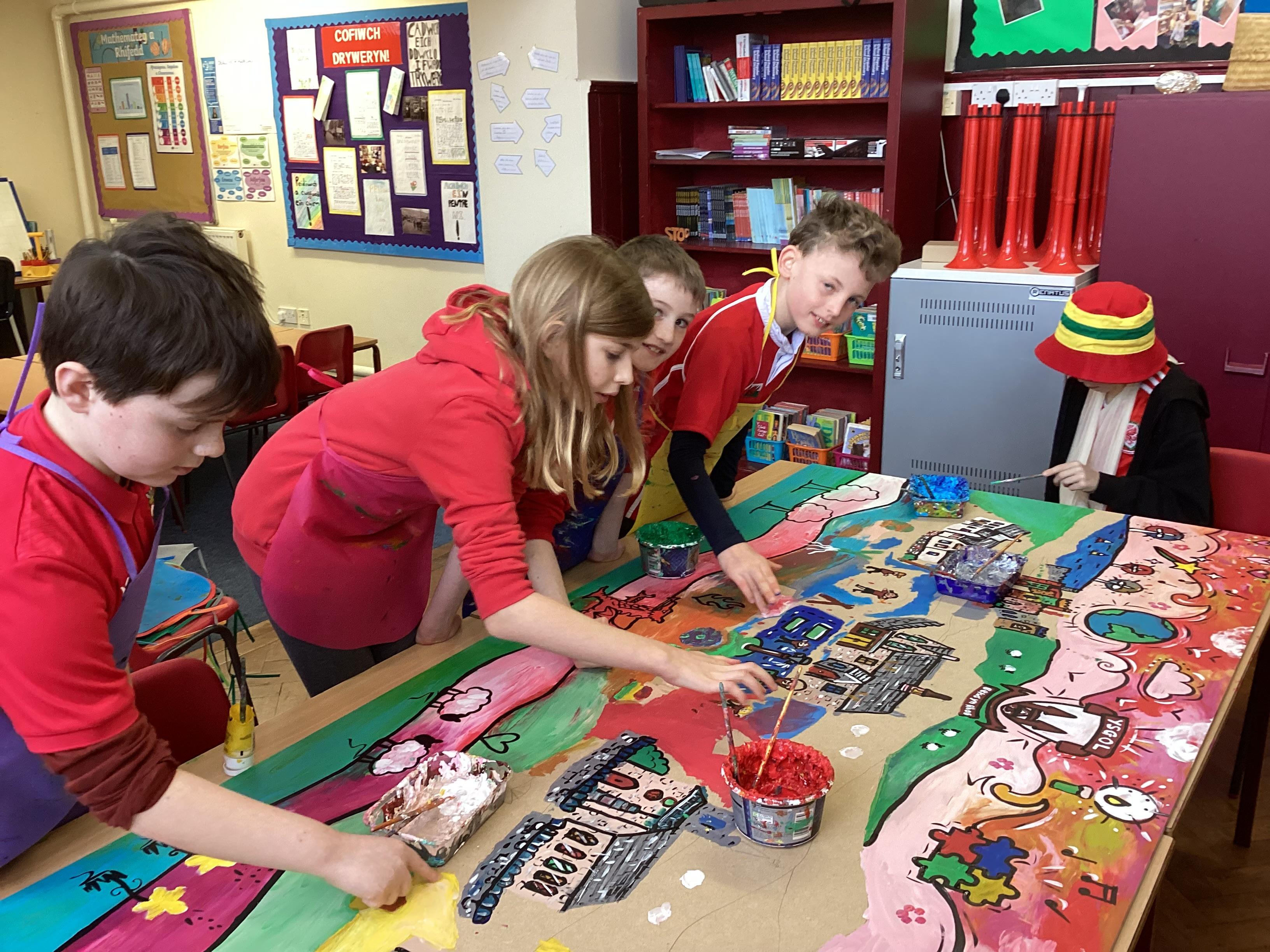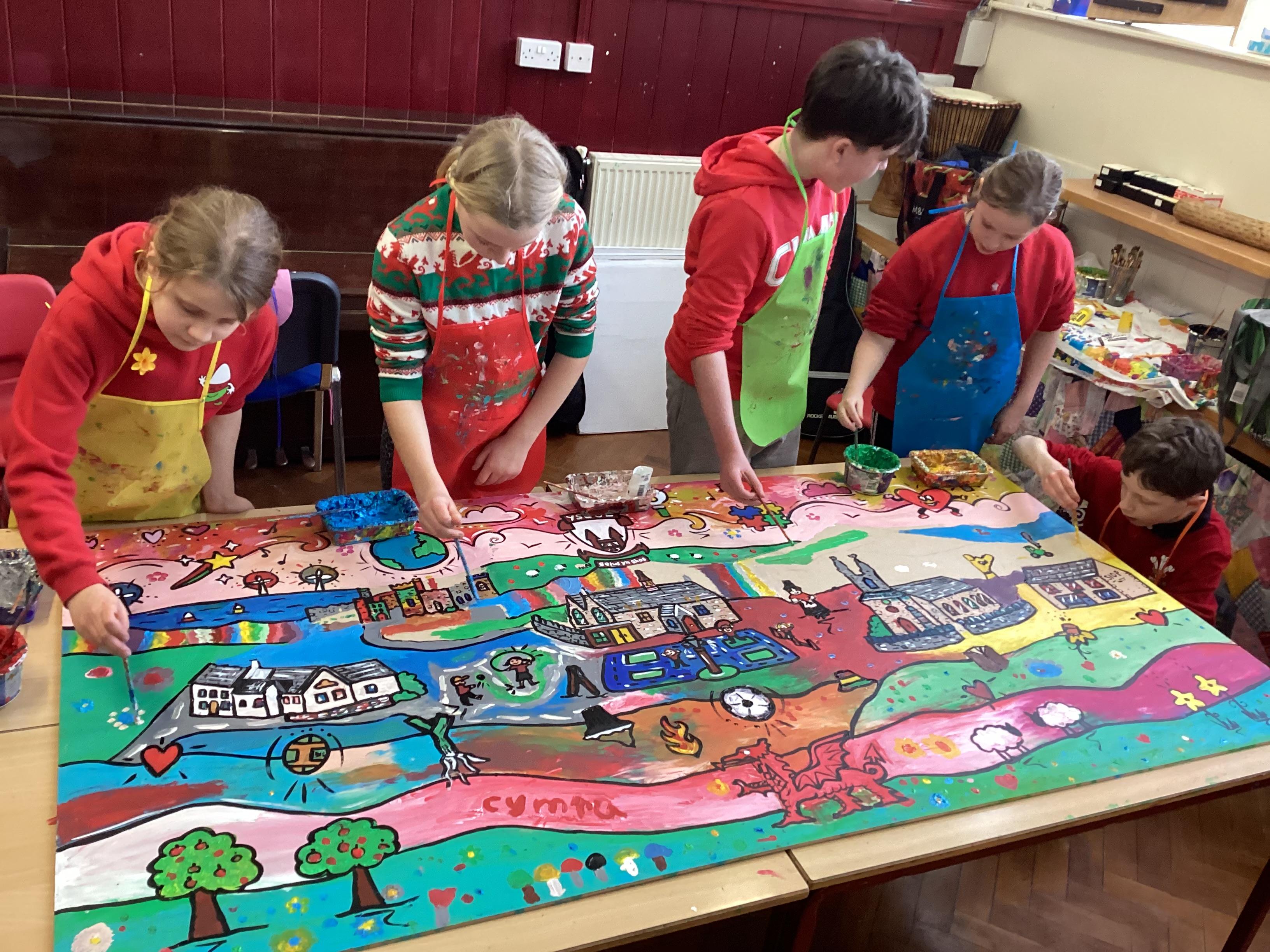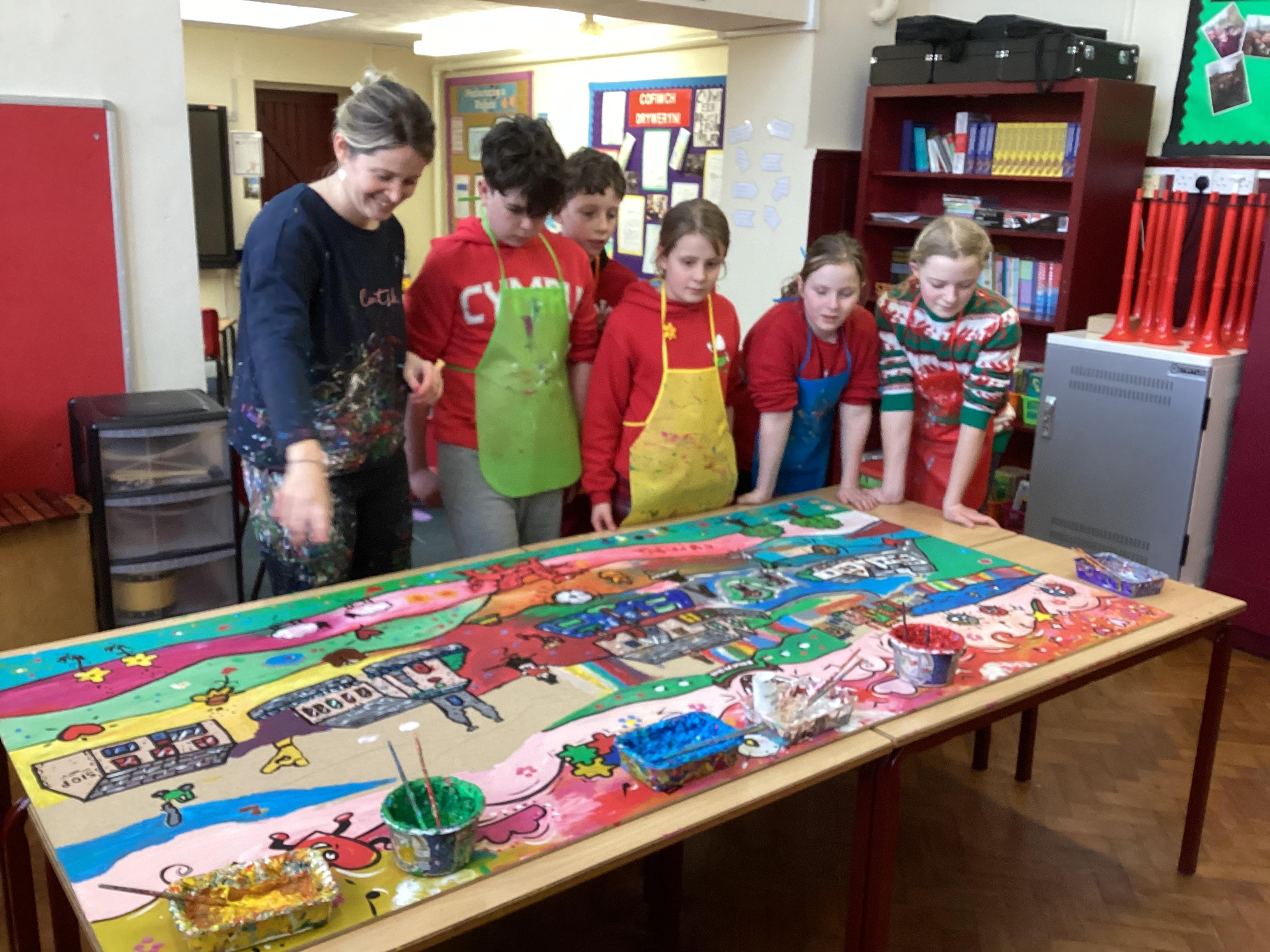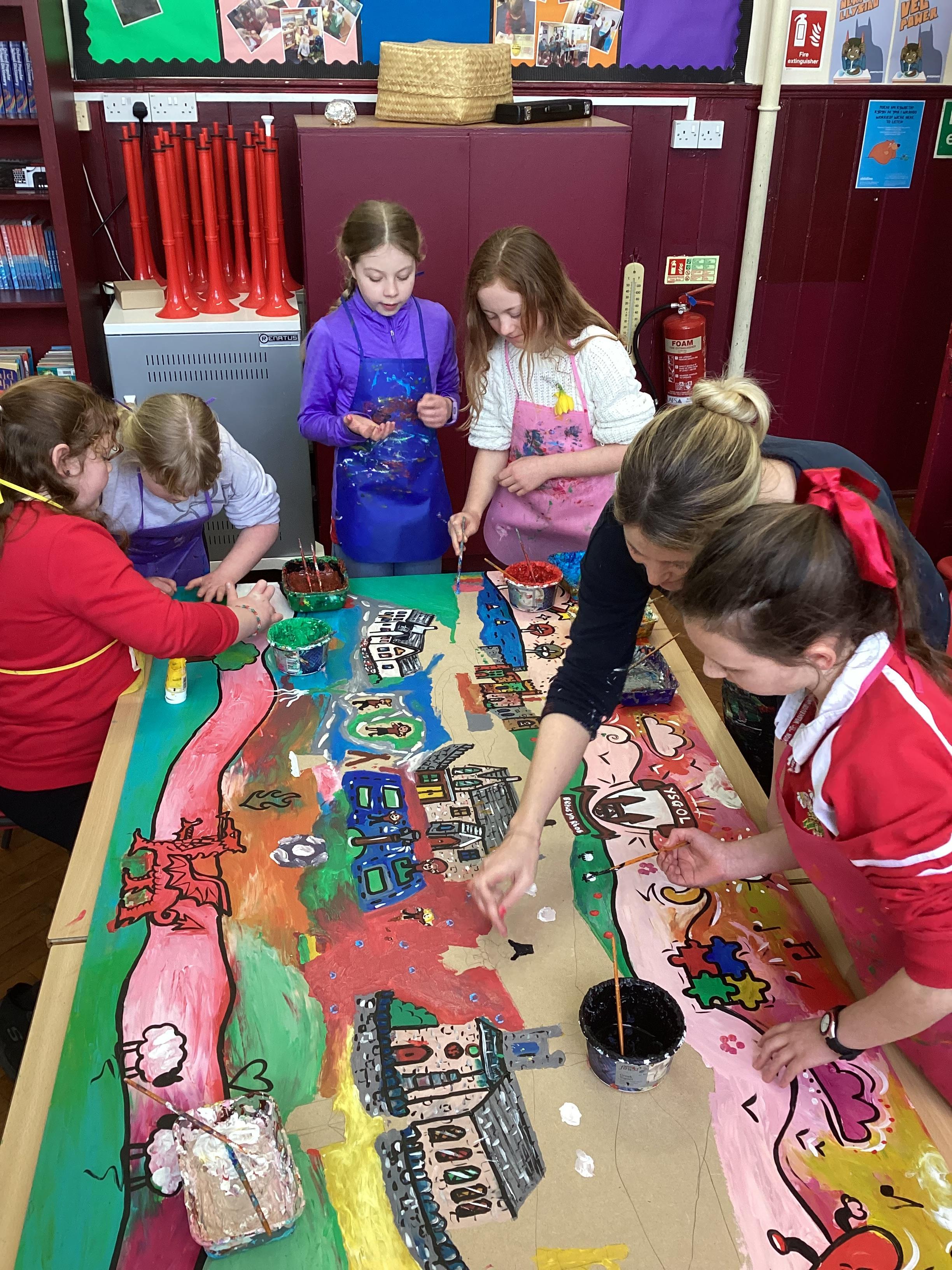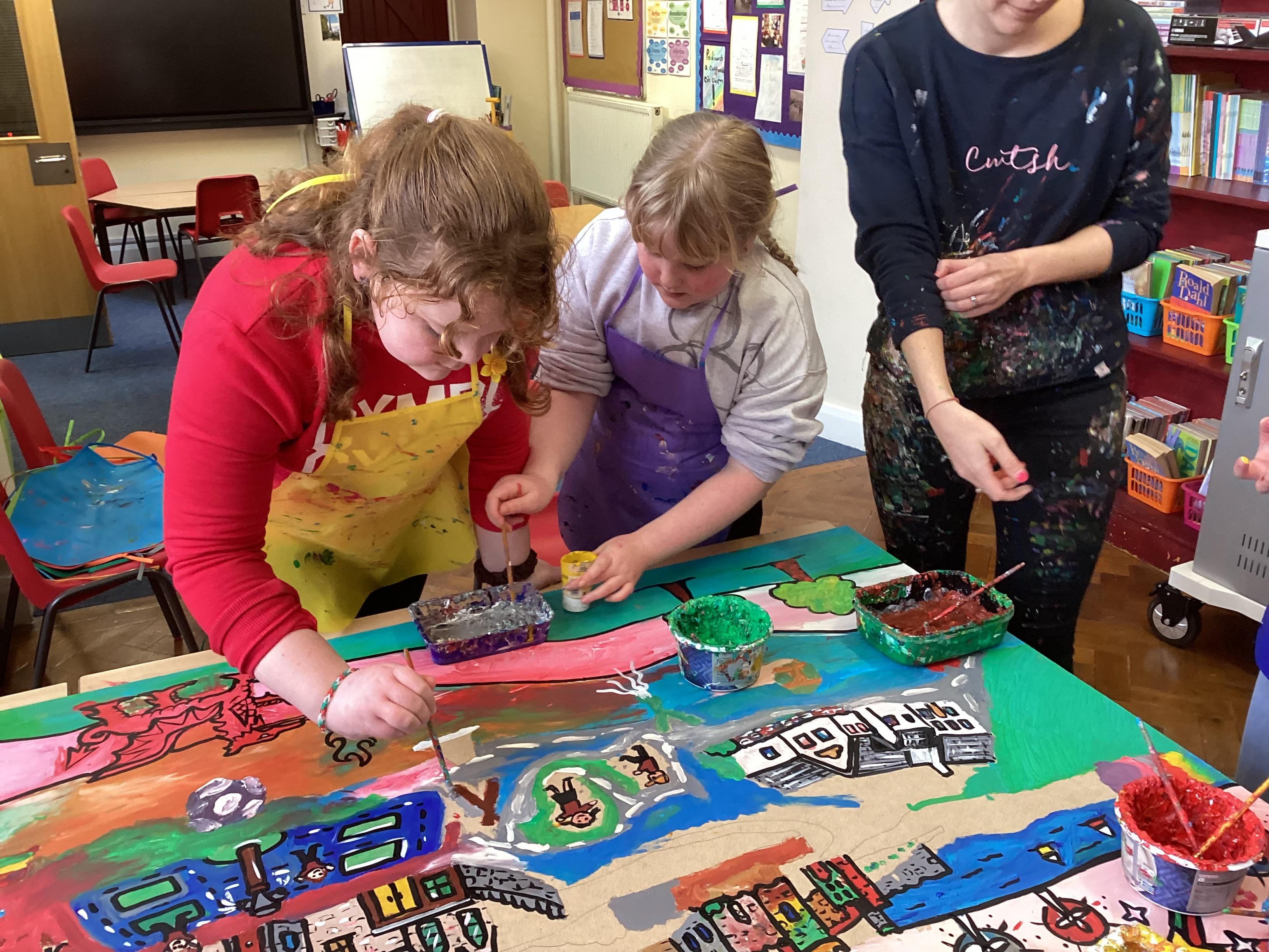 Creating a mural with Rhiannon Roberts!