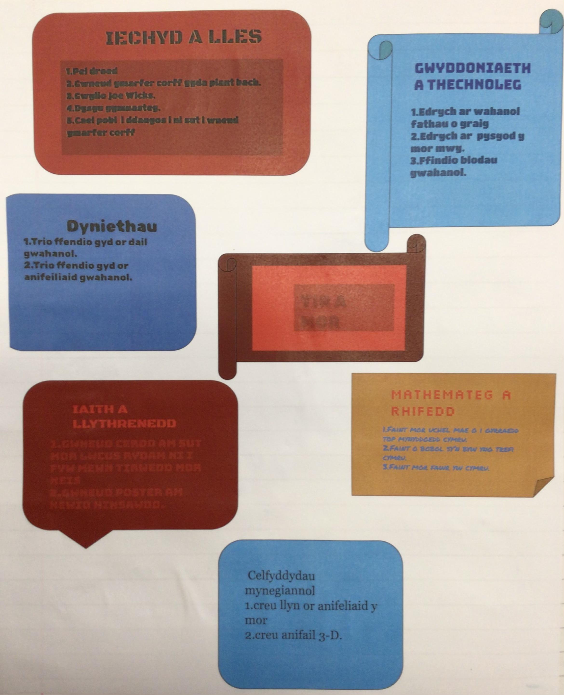 Dyma ein syniadau ar gyfer y thema: