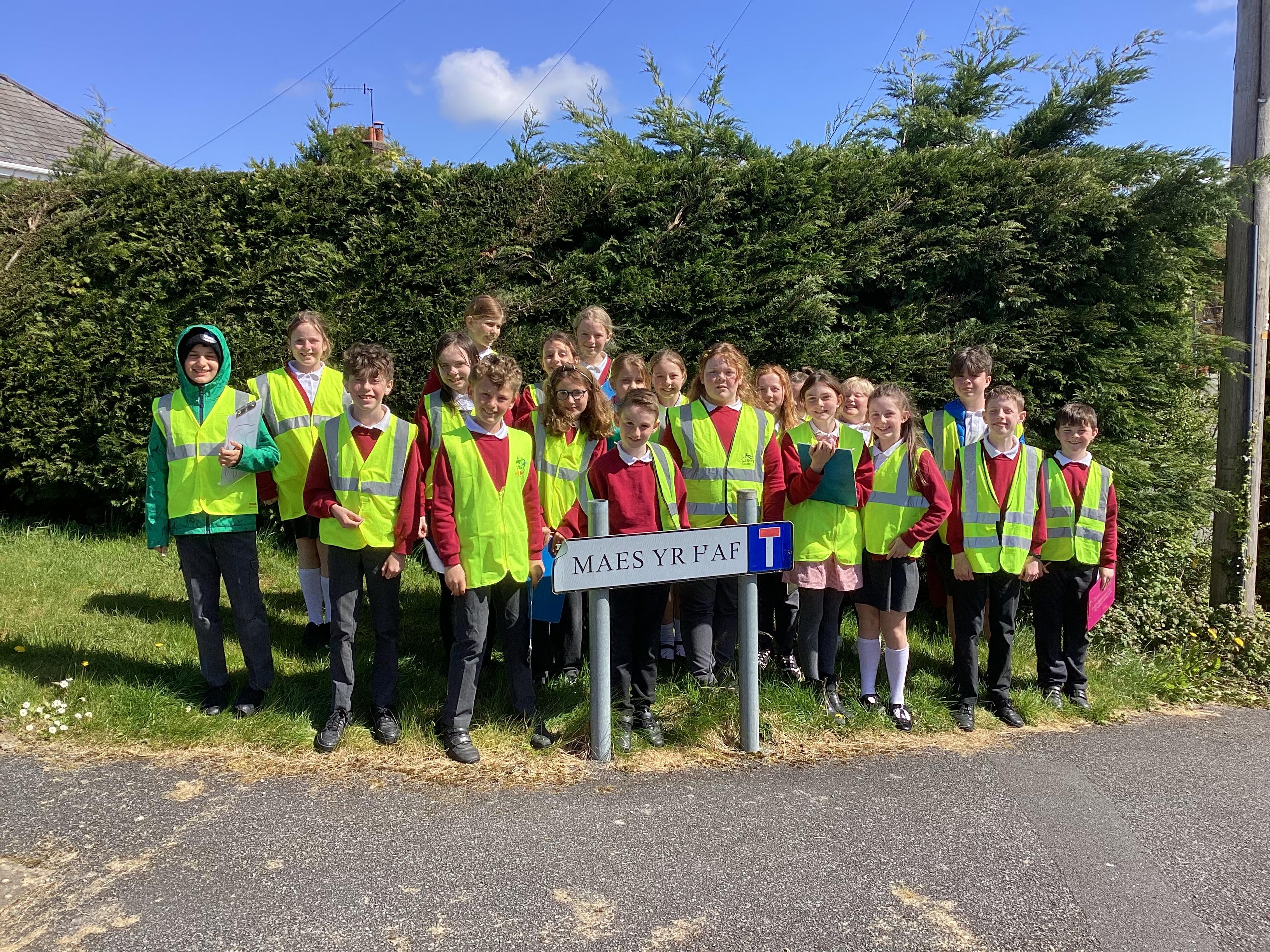 Aethom am dro o amgylch y pentref yn chwilio am enwau tai ac adeiladau!